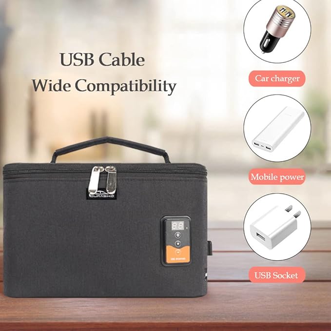 Portable USB Car Baby Bottle Warmer with Digital Display Screen,5V/20W Constant Temperature Milk Heater Bag,Heating Temperature Adjustable,Multi-Purpose Baby Bottle Warmer Bag