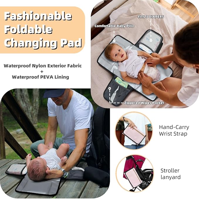 - FOLDABLE CHANGING PAD & ACCESSORIES INCLUDED: Comes with a foldable, waterproof changing pad (23”x 13”) for quick diaper changes, along with a detachable pacifier case and stroller straps to keep your hands free during outings.