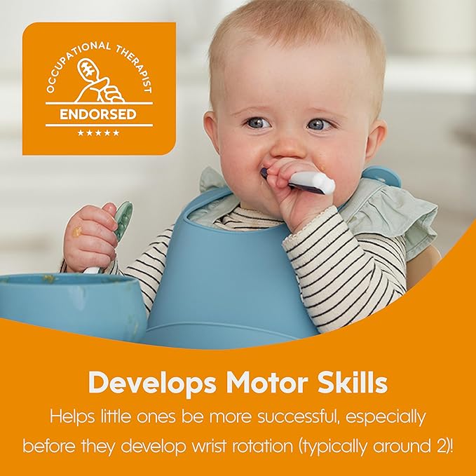 - SIMPLE TO CLEAN AND PEDIATRIC OT RECOMMENDED Approved and tested by baby care experts, our spoons are incredibly durable, ensuring long-lasting use. Made with food-grade silicone, they are free from harmful chemicals like BPA and phthalates so you can feel good about giving them to your little one. Clean up is easy in the dishwasher. Microwave or steam-sterilizing is not recommended and not needed. Trusted by pediatric OTs and loved by parents who want safe, practical, and travel-friendly feeding tools.