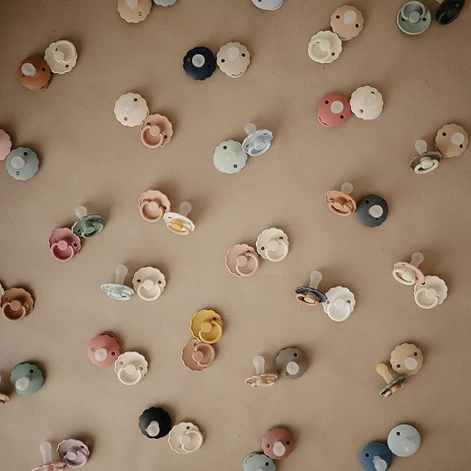 - The FRIGG line of daisy silicone pacifiers with improved SilkySoft nipple and an innovative Click-lock System has been thoughtfully designed for your baby's comfort. The outward curve keeps the pacifier off their delicate skin, while features like air holes and a security handle ensure your baby stays safe. Available in a range of soft colors, FRIGG pacifiers make a beautiful addition to your collection of baby essentials.