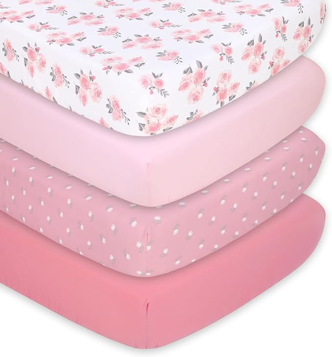 The Peanutshell 4-Pack Fitted Crib Sheet Set - Super Soft & Breathable Baby Girl Crib Sheets, Nursery Decor, Fit for Standard Mattress Cover- Floral