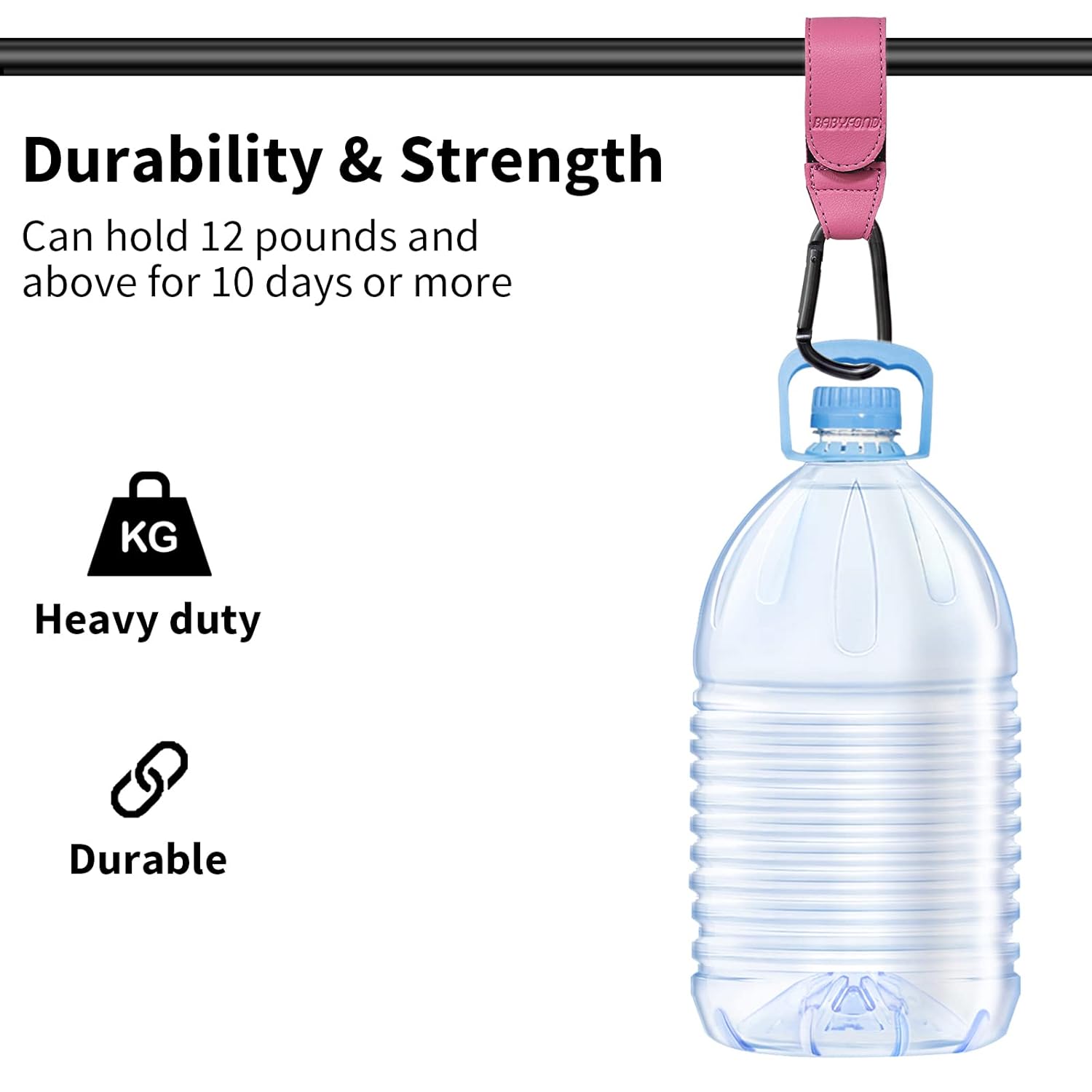 - ❤️👶【Premium Materials】Stroller hook made of sturdy & durable faux leather and velcro, large matte black carabiner can handle over 12 lbs with ease, and can hang multiple bags at the same time. This mom hook for stroller is a must have for closer bonding experience with your baby.