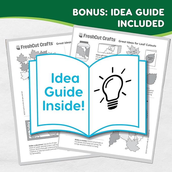 - LEAFY CREATIVITY: Create a lush Spring scene with our set of 120 punch-out Spring leaf cutouts! Each leaf is expertly crafted from high-quality card stock, offering a stunning array of shades in bright green and yellow. But that's not all - included inside is an IDEA GUIDE, filled with 12 innovative ways to use our paper leaf shapes. Whether you're crafting vibrant decorations or adding a natural touch to your scrapbooking these versatile cutouts are sure to inspire endless creativity