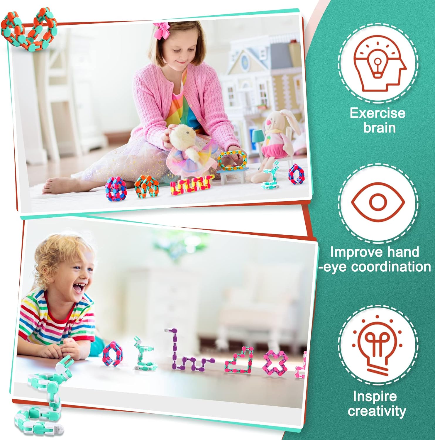 - Multi Quantity and Styles: packed with 80 pieces 24 links wacky tracks fidget toys in 26 colors (24 colors: 3 pcs/color, 2 colors: 4 pcs/color), ample quantity to meet your needs of playing, decorating and sharing; Colorful fidget toys suitable for most boys and girls