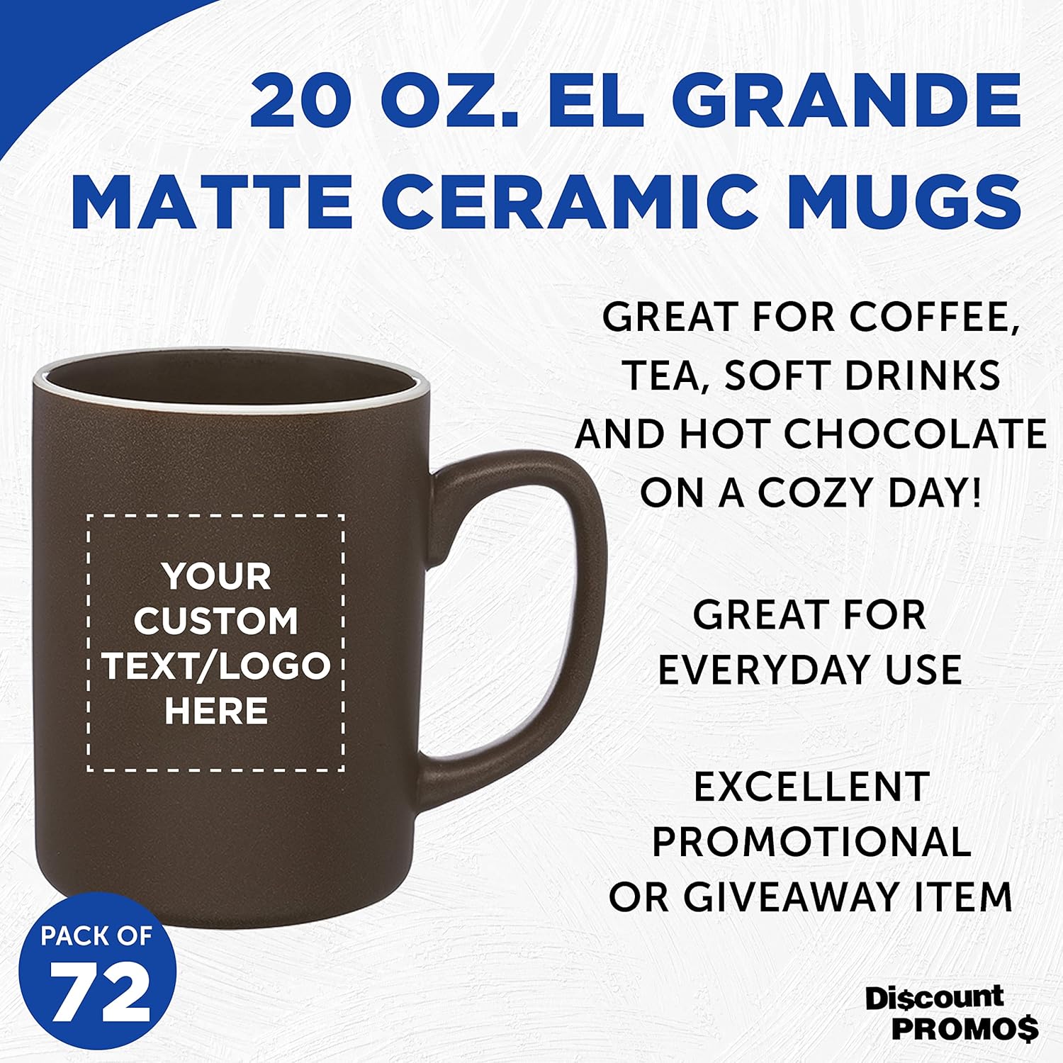 Custom El Grande Matte Ceramic Mugs 20 oz. Set of 72, Personalized Bulk Pack - Perfect for Tea, Espresso, Cappuccino, Hot Cocoa - Dark Brown