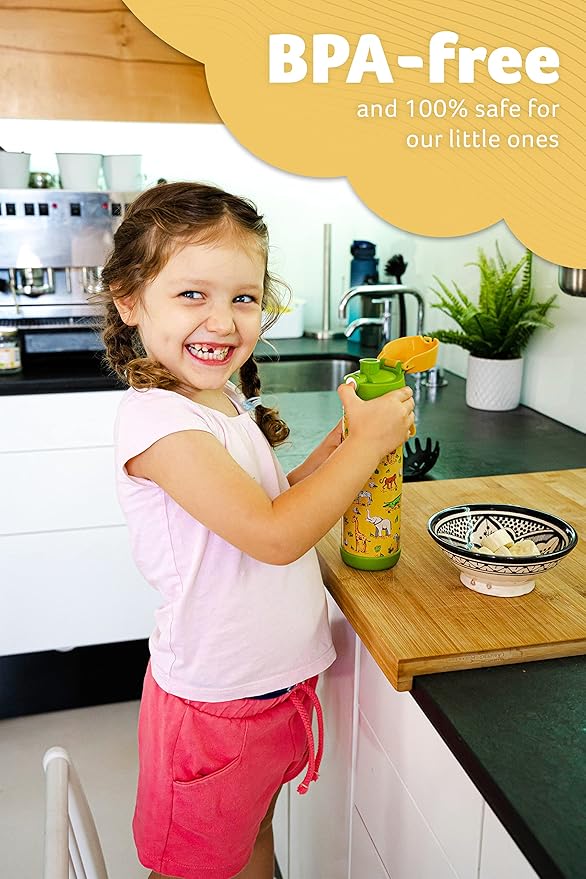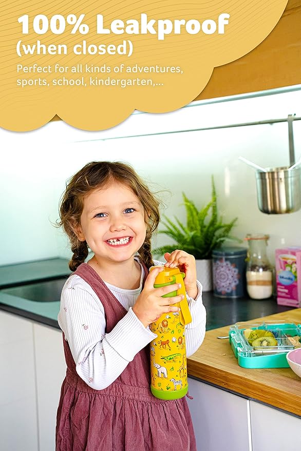 Jarlson® Mali Children's Water Bottle, Thermal Stainless Steel Water Bottle, BPA-Free, Leak-Proof, Children's Bottle with Chug Lid, Bottle for School, Nursery (Safari, 500 ml)