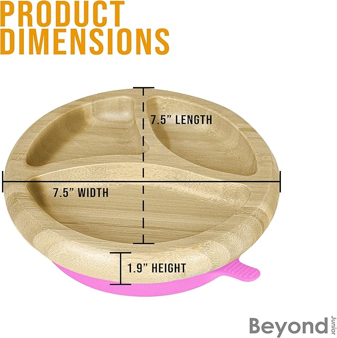 - EASILY FITS IN ANY HIGHCHAIR: Ergonomically designed for children at least four months of age, our baby bamboo plate has a convenient size that fits all brands of high chair trays. It is intended to encourage toddler self-feeding without (so much of) the mess.