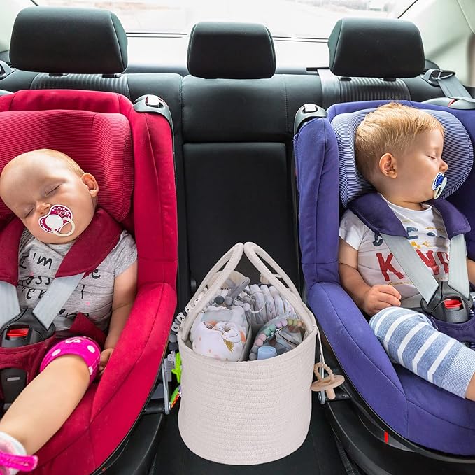 Large Baby Diaper Caddy Organizer for Girl Boy Rope Nursery Storage Bin Basket Portable Holder Tote Bag for Changing Table Car Travel Baby Shower Gifts Newborn Essentials Registry Must Haves White