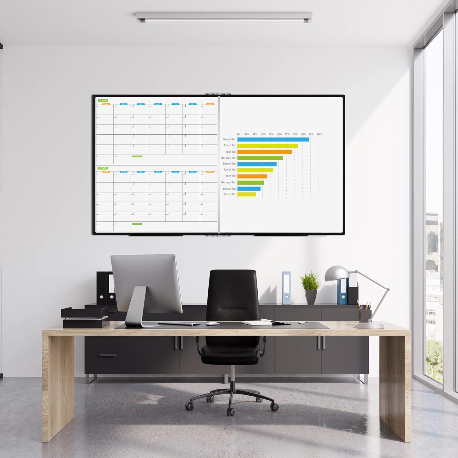- SUPER LARGE FOLDABLE COMBINATION BOARD: Best message board for home, office or school. Expand to get a huge size board and fold to storage and transport easily. Rare 2 month calendar and 1 whiteboard combination board caters to some special needs.