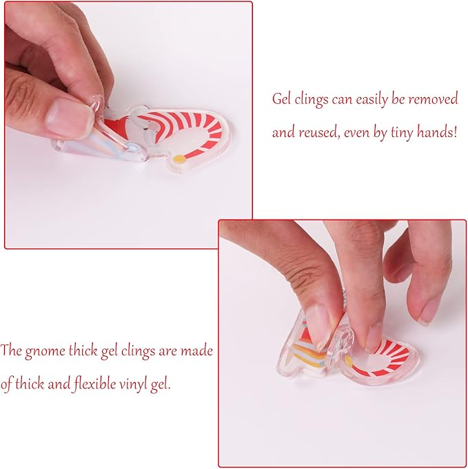 20 Pieces Christmas Thick Gel Clings Christmas Gnome Window Gel Clings Decals Stickers for Toddlers Kids Adults Home Airplane Classroom Nursery Christmas Party Supplies Decoration Removable and