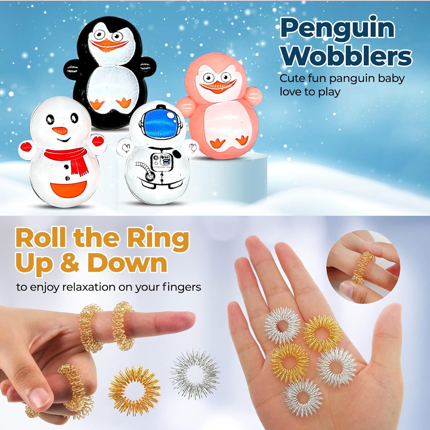 - 🍀💕【UPGRADED FIDGETS PACK】Check out our cool new upgraded fidget toys for any ages from toddlers to adults! Our selection includes mini poppers, push packs with Pop Tubes, Dinosaur Party Favors, Marble Mesh, Wacky Tracks, Monkey Noodles, Squishy Toys, Ice Cream Poppers, Infinity Cubes, Fidget Rings for Anxiety, Tangle Fidgets, Stretchy Calm Strips, Anxiety Fidget Rings, and more.