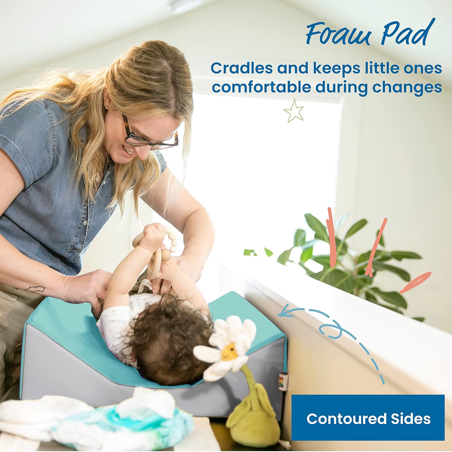 - Cozy Design: Use on any safe, flat surface, the plush pad cradles infants and babies and allows caregivers to face the child when changing diapers; the wide base features a non-slip bottom