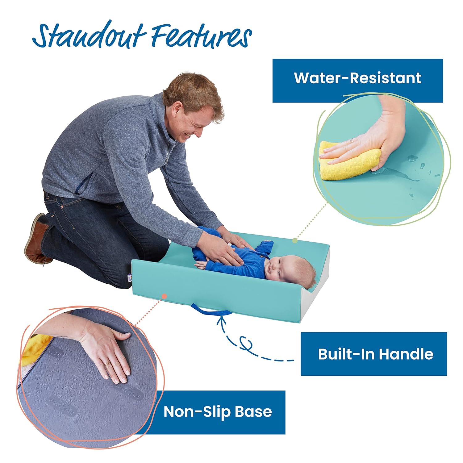 - Changes on the Go: No need for covers or pads, this lightweight all-in-one changer is designed with a built-in handle that makes it easy to carry and makes baby changes simple