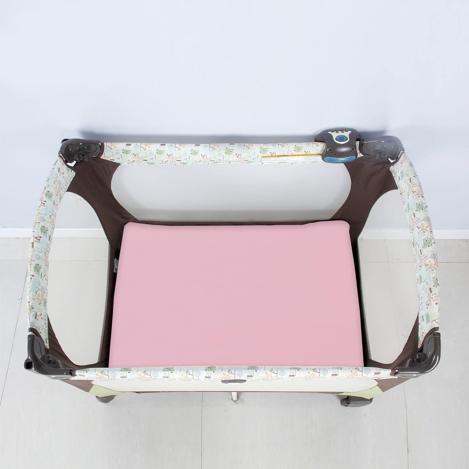 - High Quality: These pack n play sheets are made of ultra soft microfiber, woven into a soft and durable fabric,and the pack n play mattress pad is featuring 100% soft micropeach sleep surface and filled with soft polyester fiber, no more worry for leaky bottle messes, or potty training misses. Your baby will be enjoying the soft, smooth and comfortable feeling when sleeps or plays in the playard.