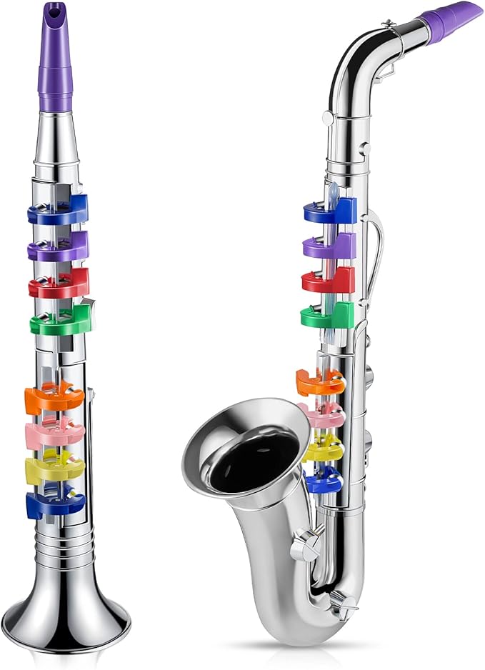 - Ideal Musical Instruments Set: you will receive 1 piece of plastic toy saxophone and 1 piece of clarinet with 8 colored keys, which can easily satisfy your needs for playing and sharing; It is recommended that little ones should use these products under the supervision of the adult to prevent accidental swallowing