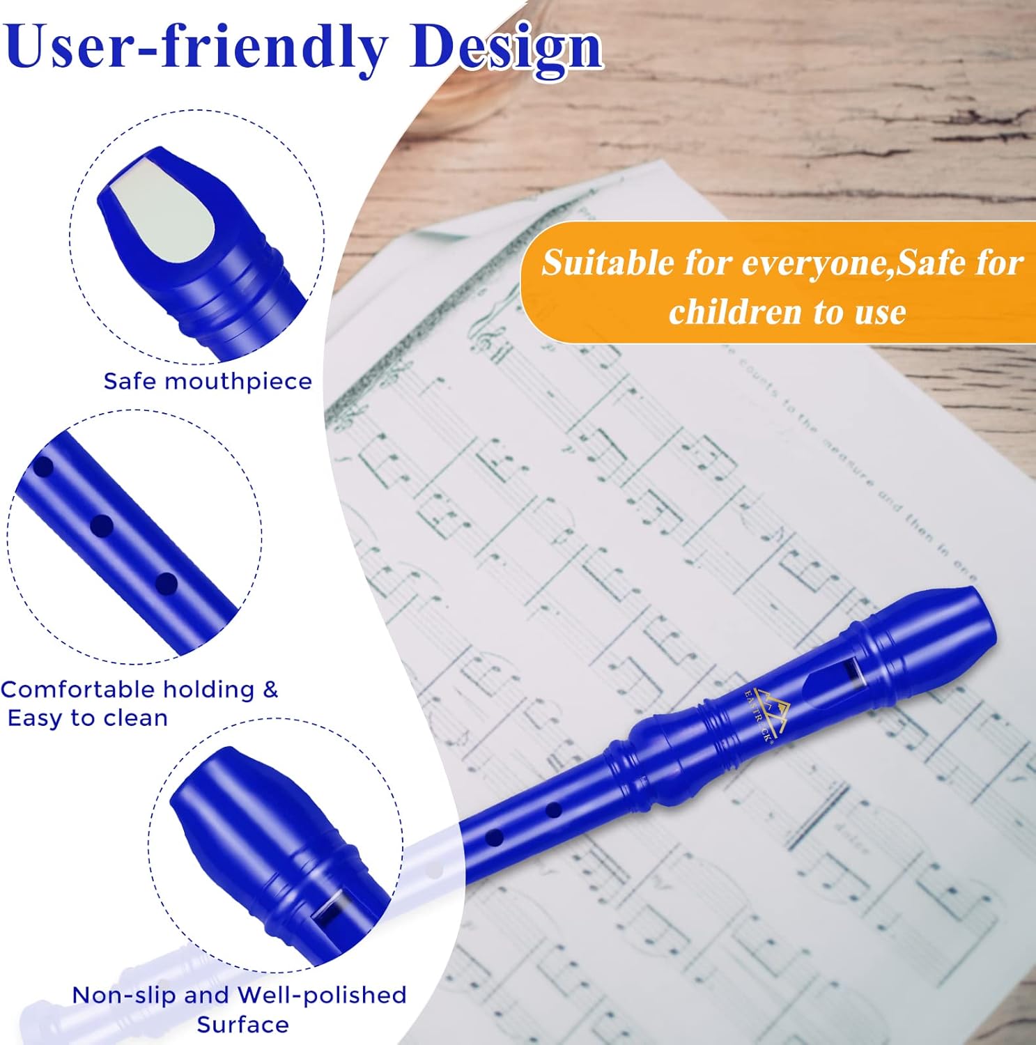 - ♪ Special Design-Eastrock Soprano Recorder adopts a 3-piece structure, and the position of the C hole can be adjusted according to the size of the hand. The finely polished mouthpiece can fit your mouth very well, and the German fingering is very suitable for beginners. The sound of this recorder is bright and easy to play. It can help beginners improve their listening and motor skills in music, allowing beginners to learn musical instruments actively and happily