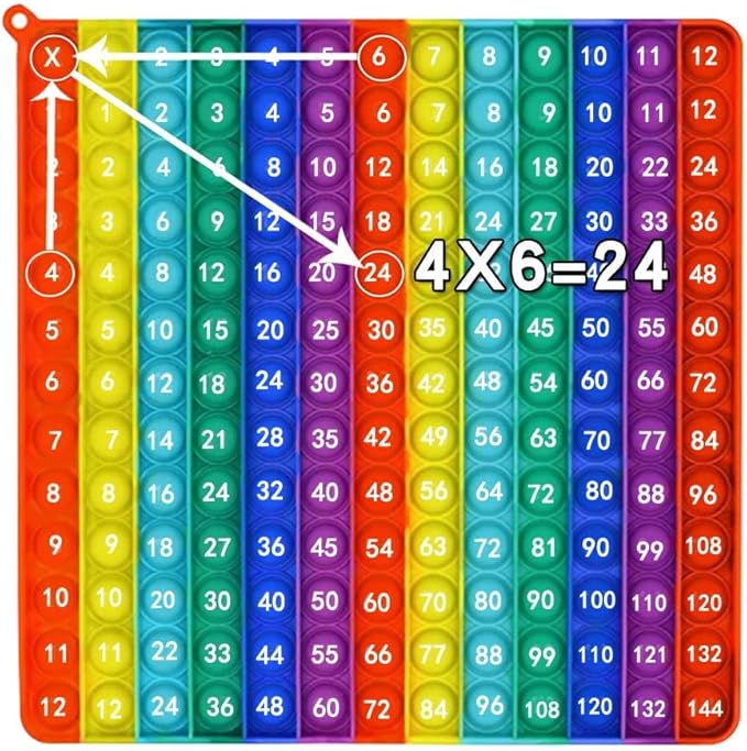 - [Premium Materials and Premium Quality] This Fidget Multiplication Game Table Toy is made of premium silicone and Push Fidgett Ttoy can be repeatedly pressed for a long time. It is comfortable to touch, non-toxic and odorless, and will not cause any harm to the body and pets.