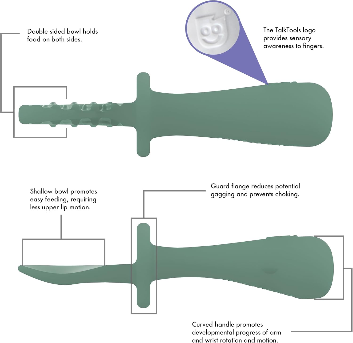 TalkTools ITSY Tiny Silicone Spoons – Twin Pack Soft Silicone Self-Feeding Training Spoons for Kids & Toddlers, Anti-Choking Flange Guard and Non-Slip Handle (Sage)