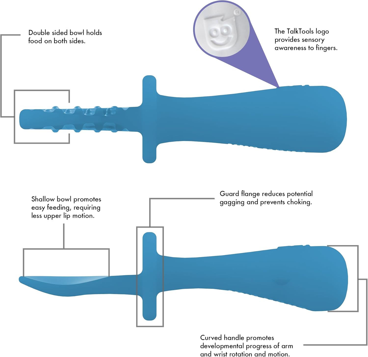 TalkTools ITSY Tiny Silicone Spoons – Twin Pack Soft Silicone Self-Feeding Training Spoons for Kids & Toddlers, Anti-Choking Flange Guard and Non-Slip Handle (Ocean)