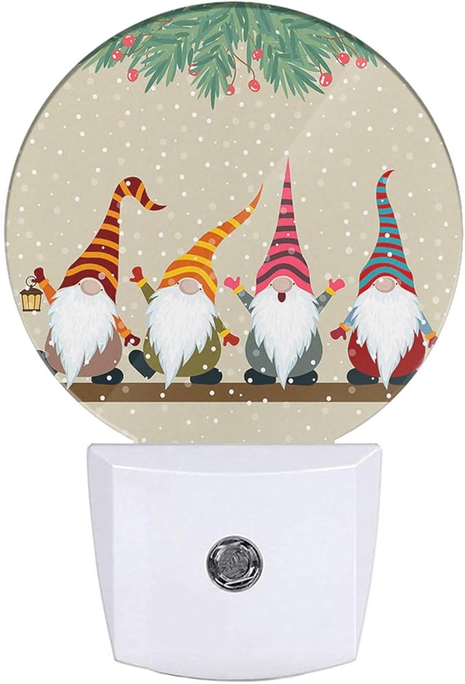 EKOBLA Gnome Night Light Christmas Winter Decorative Santa Elf Snowflakes Plug in Nightlights Home Dusk to Dawn Smart Sensor LED Lamp for Men Women Boys Girls Gift