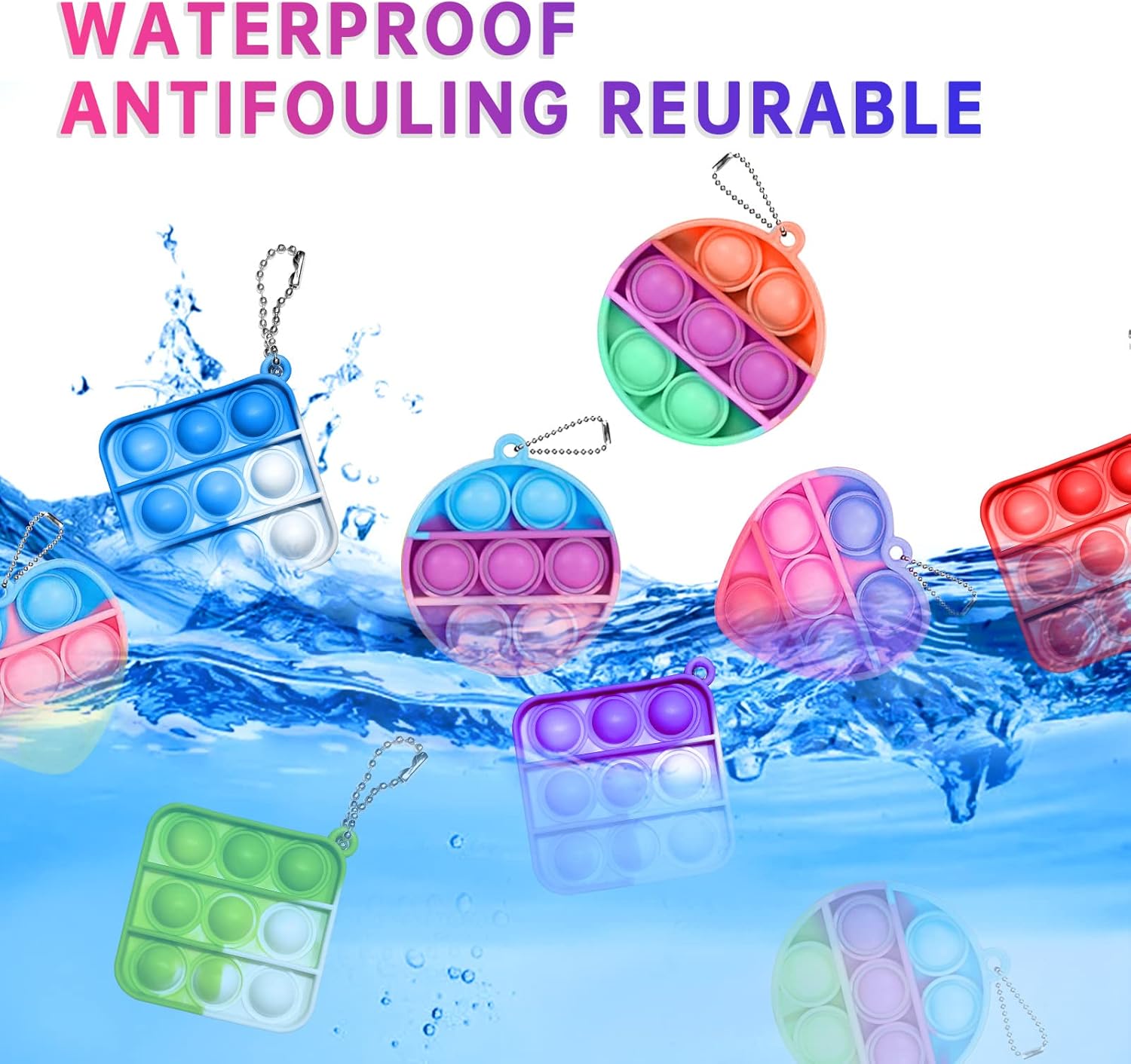 - [MINI FIDGETS EFFECTIVELY RELIEVE STRESS]: Our pop keychain toy will soothe your soul and make you feel calm quickly. Effectively relieve your stress and anxiety from working and studying for a long time. It can also be an effective ADD, ADHD, OCD toy to help kids relax and concentrate, stressed and nervous. But also improve children's calculation, thinking, hands-on ability This multi-purpose silicone squeeze toy is the perfect game for parents, the elderly, children and adults.