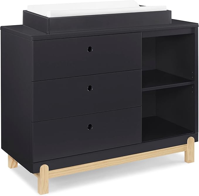 - DRESSER FEATURES: This dresser features three drawers for plenty of storage space, and the other side features two open cubbies to house books, bins or toys | Changing Top and Changing Pad are included
