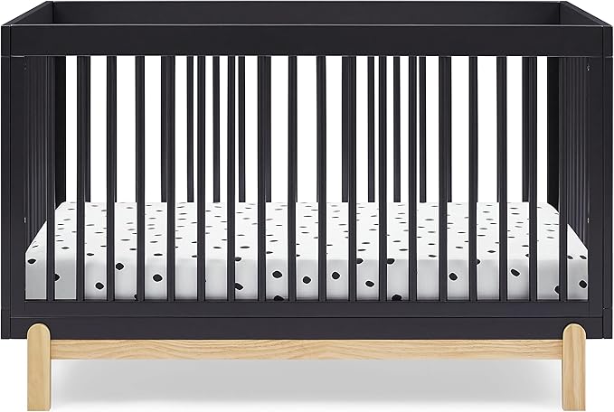 Delta Children Poppy 6-Piece Baby Nursery Furniture SetIncludes: Convertible Crib, Dresser, Changing Top, Mattress, Sheets, & Changing Pad, Midnight Grey w/Natural
