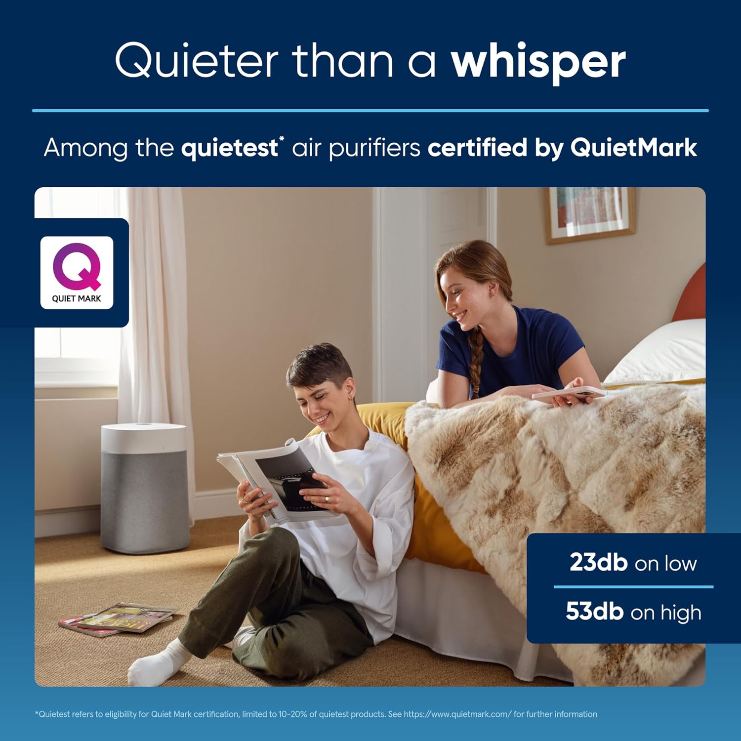 - LET’S CLEAR THE AIR QUIETER: Quiet Mark certified (23-53dB); Cleans up to 3,048 sqft space in 60 min,1,524sqft in 30min or 635sqft in about 12.5min on high