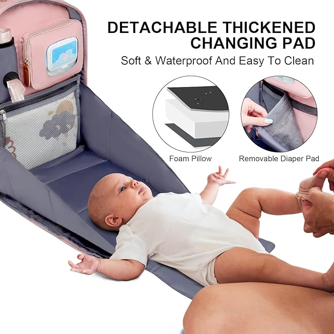 Diaper Bag Backpack with Changing Station, Baby Diaper Bag Organizer for Moms Dads Large Baby Changing Bags