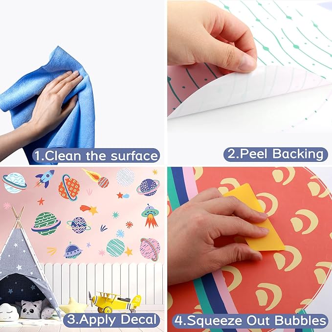 - The rocket and planets in space wall decals are perfect for making an accent wall in kids bedroom, living room, art room, studio wall decor, preschool classroom wall decor, neutral nursery decor, daycare decor, apartments and dorms decor, also can used on smooth surface of cabinets, furniture.