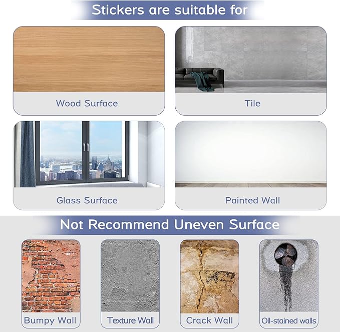 - Made of high-quality vinyl sticker material, designed to be safe for home decor use, no fade, durable use; Removable and easily re-position when ready by just peel and stick. Vinyl Wall Stickers are for indoor use on dry, clean and smooth surfaces, they will work on a textured wall but may lift slightly on the edges.