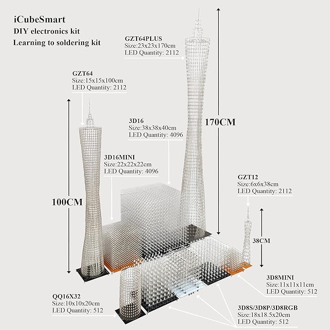 - [Difference between 3D8MINI and 3D8S] The distance between LEDs and LEDs of 3D8MINI is 1.3cm, and the finished product size is 11x11x12cm. The LED-to-LED spacing of 3D8S is 2.3cm, and the finished product size is 18x18.5x19cm.