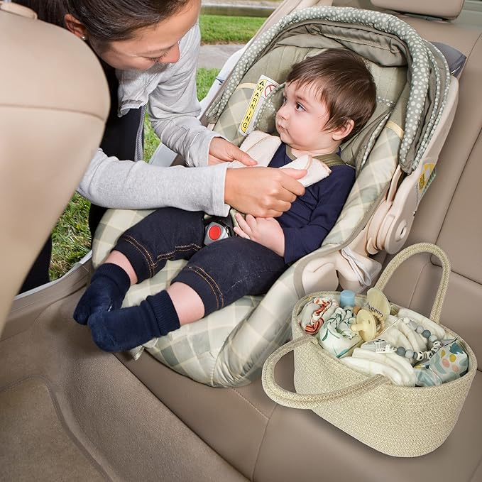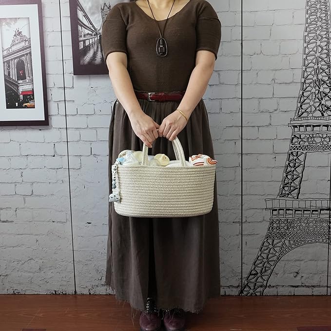 Baby Diaper Caddy Organizer for Girl Boy Cotton Rope Nursery Storage Bin Basket Portable Holder Tote Bag for Changing Table Car Travel Baby Shower Gifts Newborn Registry Must Have Items oatmeal