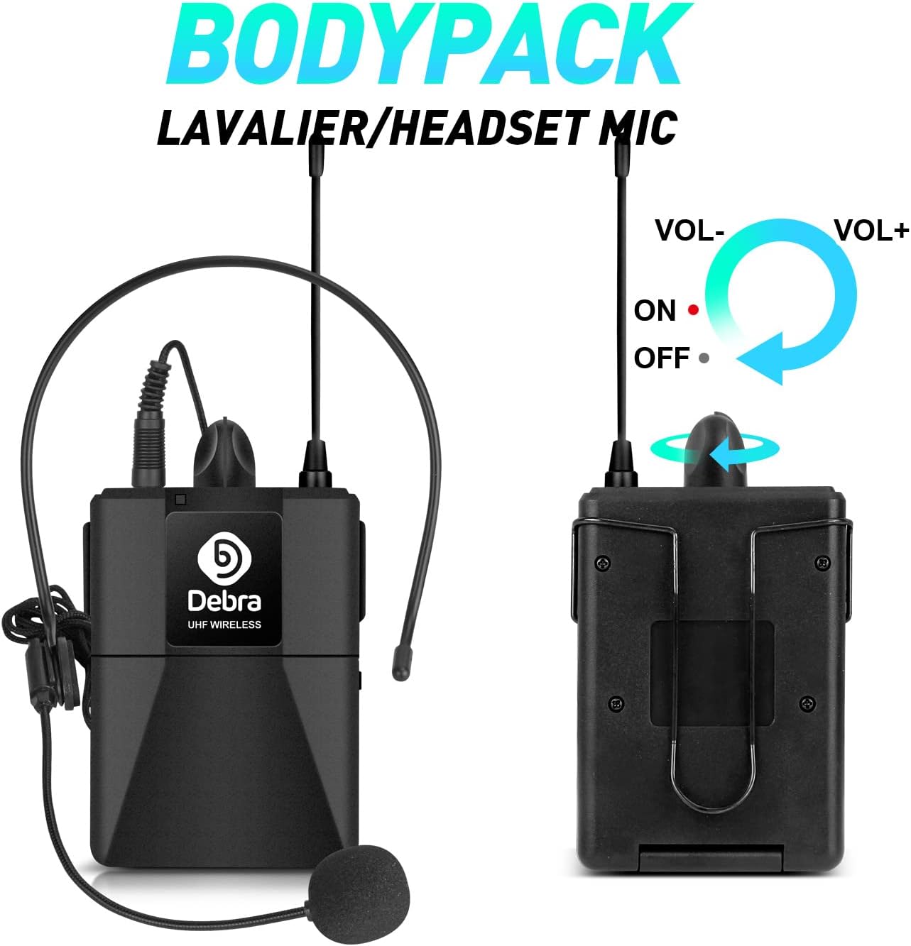D Debra Audio AU800 Pro UHF 8 Channel Wireless Microphone System with Cordless Handheld Lavalier Headset Mics, Metal Receiver, Ideal for Karaoke Church Party (4 Handheld & 4 Bodypack)