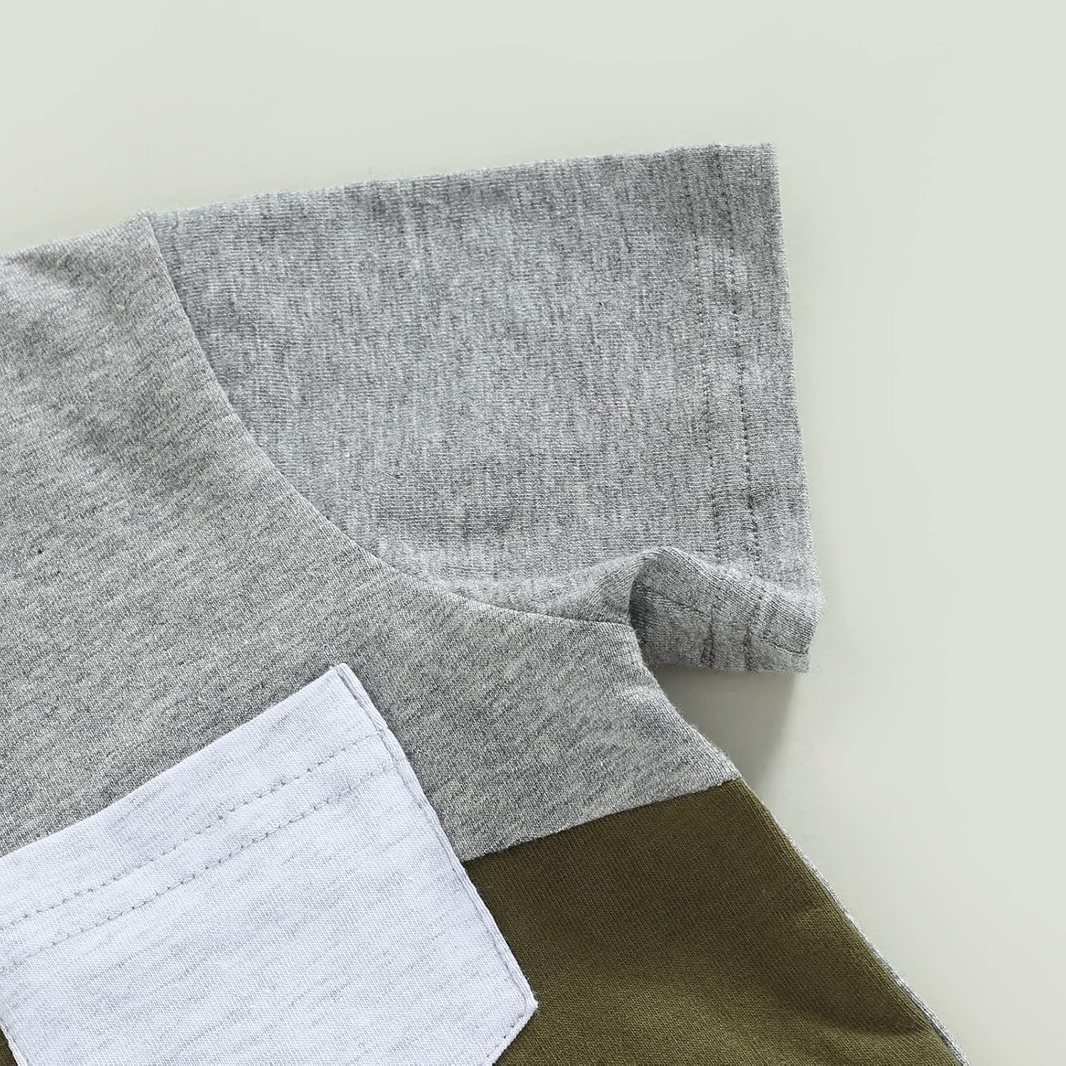 • Relax Crew Neck, One Pocket Front, Striped Pattern, Comfy Short Sleeve T Shirts Tee Tops, Elastic Waist with Drawstring Shorts, Side Pockets, Comfy and Cute Newborn Baby Boys Summer Outfits Clothes