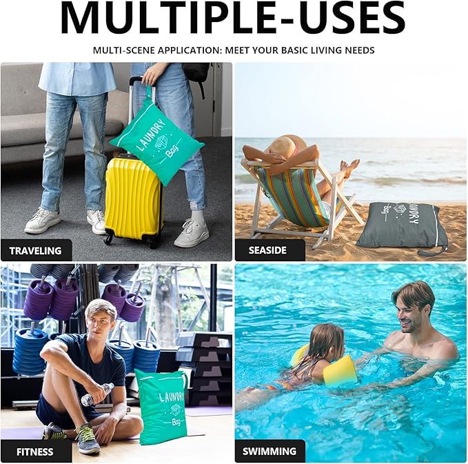 - 【Multifunctional Usages】This washable wet dry bag with zipper for dirty clothes is suitable for so many different uses or make thoughtful presents, you can use the travel bags for swimsuits, diapers and dirty clothes, nice for the beach, school, daycare, camping and many other uses.