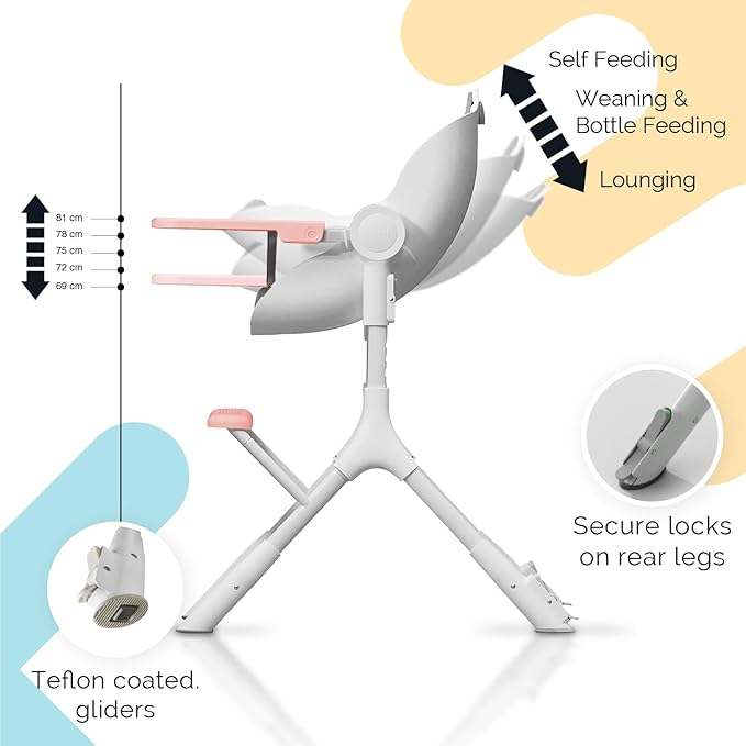 - EASY MOVEMENT- The Cocoon Z High Chair features innovative Teflon-coated gliders instead of wheels, offering smooth, effortless mobility across surfaces like marble, wood, and carpet without causing scratches. With no wheels, there are no accidental rolls, and secure rear leg locks add an extra layer of safety. Its 360-degree maneuverability allows it to glide easily through tight spaces, making it both convenient and safe for your little one.