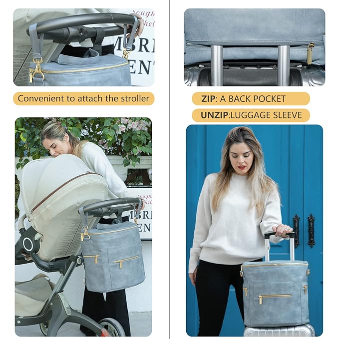 - 【Multiple Ways to Use】This travel diaper bag can be worn as a casual backpack, cross body diaper bag, mommy bag, or attached to a stroller with the included straps. The back pocket can even be zipped to keep your tablet and unzipped to turn the diaper backpack into a luggage sleeve, making travel with your baby a breeze. Ideal for use as a baby diaper bag, mother's backpack, nurse bag, or stroller diaper bag.Additionally, it is also an ideal gift for Mommy to Be,hospital bag, Mother's Day, etc.