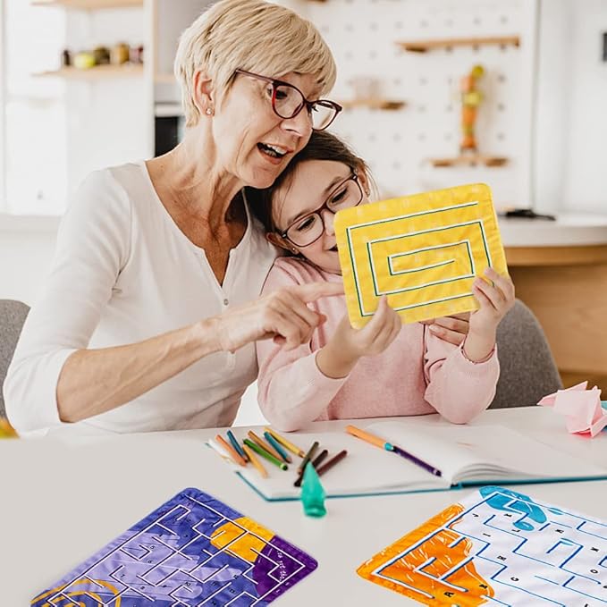 - [Sensory Marble Maze Set]:Includes 5 Pack sensory mats with 2 sizes to meet your various needs.It takes us to work the marble through the maze, push it from one side to the other, which is easy and funny, to keep you busy and focused.The maze has a calming effect. Focus, relieve anxiety, exercise fingers, suitable for children with autism and ADHD relieve anxiety or busy fingers provide attention to guide thinking, regulate emotions.