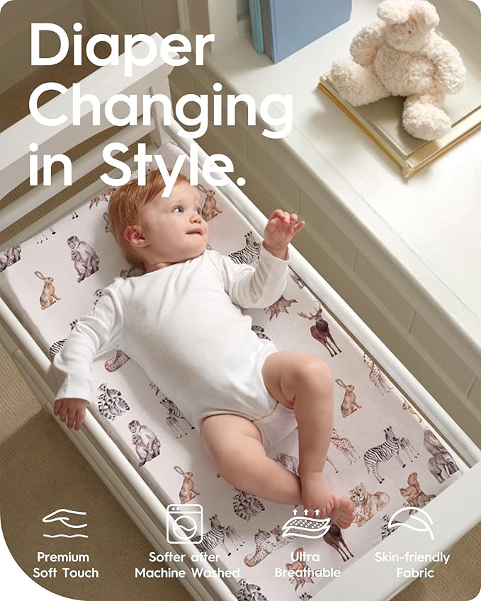 - FEEL THE SOFTNESS THAT SURPASSES ALL - that's what TotBasic changing pad cover offers. Designed to mirror the tenderness of your loving hugs, our changing table cover is crafted from our patented fabric made of 100% Jersey Cotton. Incredibly soft and super stretchy, creating the perfect snuggly embrace for your baby's delicate skin. So soothing and comfortable, provides a cozy and comfortable surface for your little one to lie on during diaper changes.