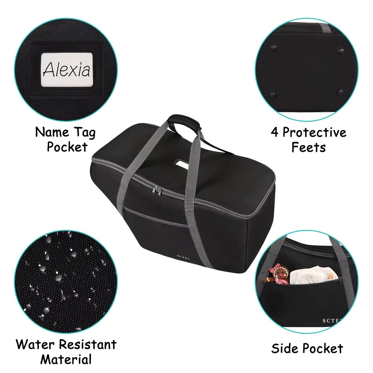 Car Seat Travel Bag Fit Graco SnugRide 35 Lite and Base, Chicco KeyFit 30 and Base, Car seat Bags for Air Travel, Padded Infant Carrier Bag with side pocket and Protective Feet, Extra small Bag
