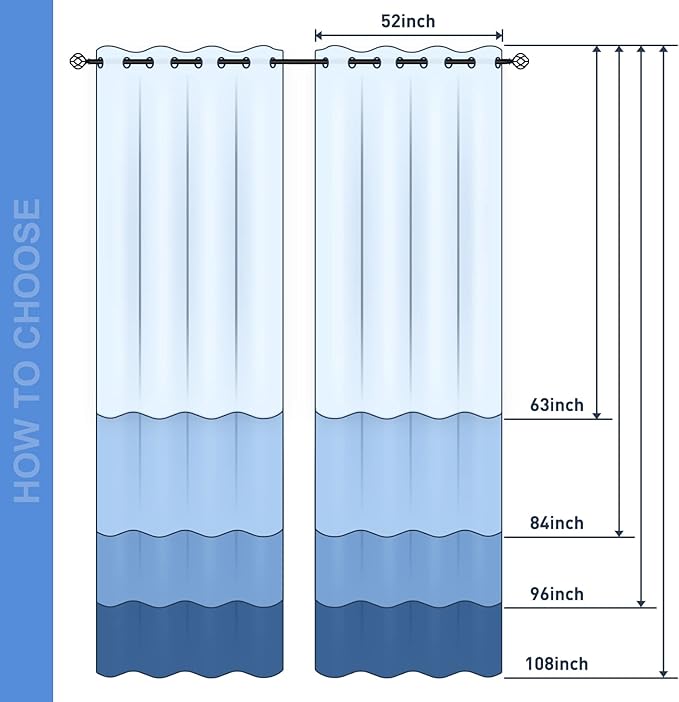 - Package Includes: Set of 2 Blackout Window Curtains; Each panel measures 52" wide x 63" length with 8 grommets top each. Quality fabric feels soft, silky and heavy.