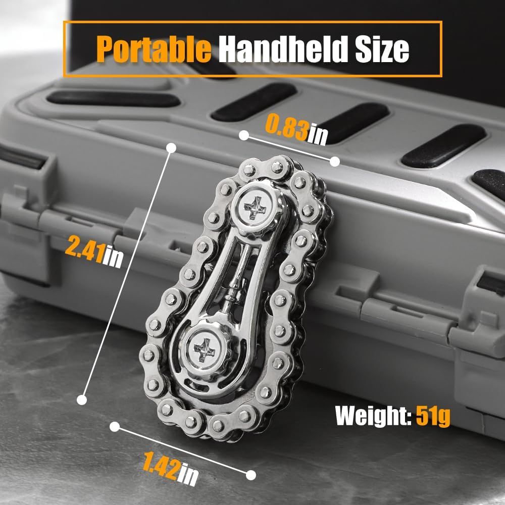 - ⚙Multiple Spinning: You can spin it by gripping the button at one end of the chain with your thumb and forefinger, or roll it in your hand and on a table. Creating a relaxing sound like a bicycle chain.