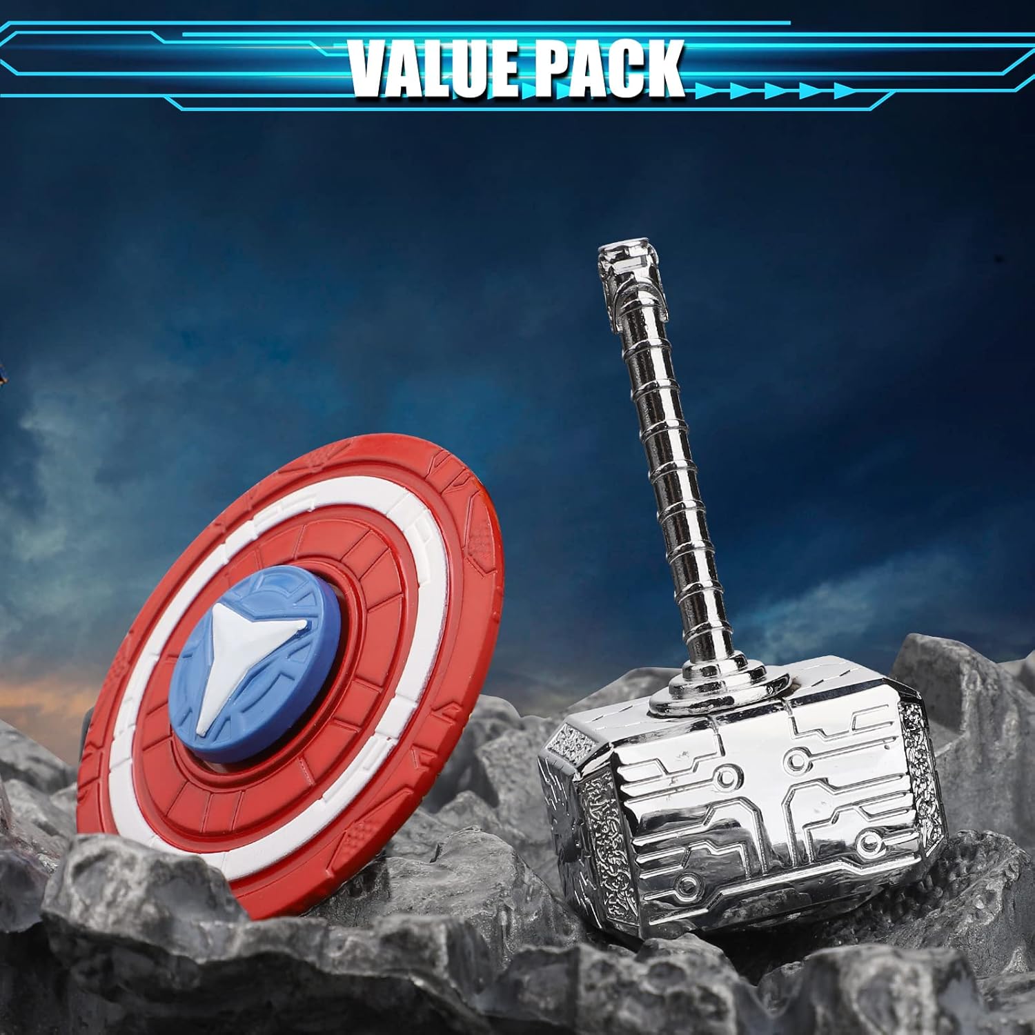 - Shield Fidget Spinner: The fidget spinner use red as the theme color and the superhero logo to create a beautiful pattern and its lines rotate to create a dynamic effect. It's made of premium alloy, durable and lightweight to use. They can bring you a better experience of playing.