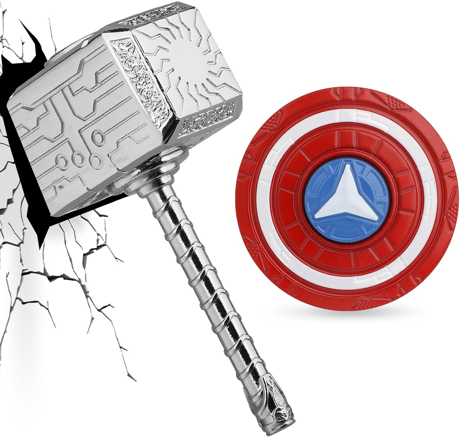 Hammer Fidget Spinner Metal Toy Transformable 2 in 1 for Kids Adutls, Shield Hand Finger Spinner Kinetic Desk Toy for Office Classroom Prizes Birthday Gift