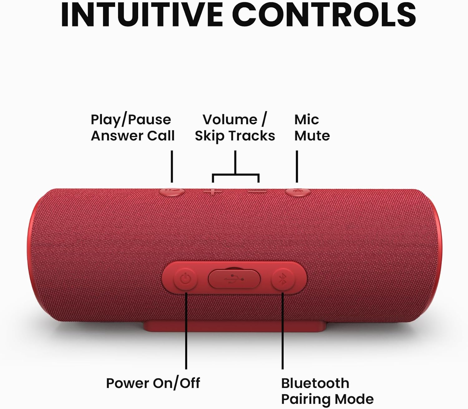 Cleer Scene Portable Bluetooth Speaker,IPX7 Waterproof,Powerful Sound and Deep Bass,Built-in Echo and Noise Canceling Microphone,12 Hours Battery,for Office,Home,Outdoors and Travel-Red