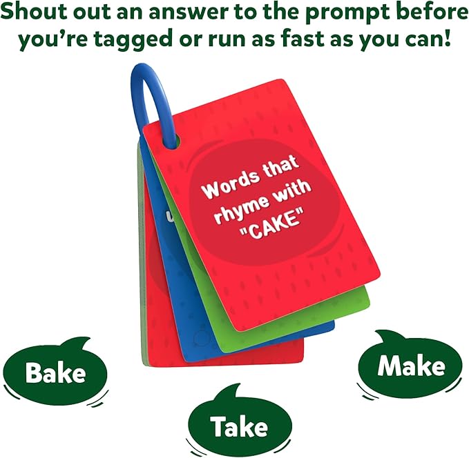 - 100 EXCITING CHALLENGES: This game includes 100 fun prompts to encourage children to think fast on their feet as they run in this outdoor category game! A few examples are Can you name things you find in the kitchen? Things that are the color red? Sports that are played with a ball? and much more!