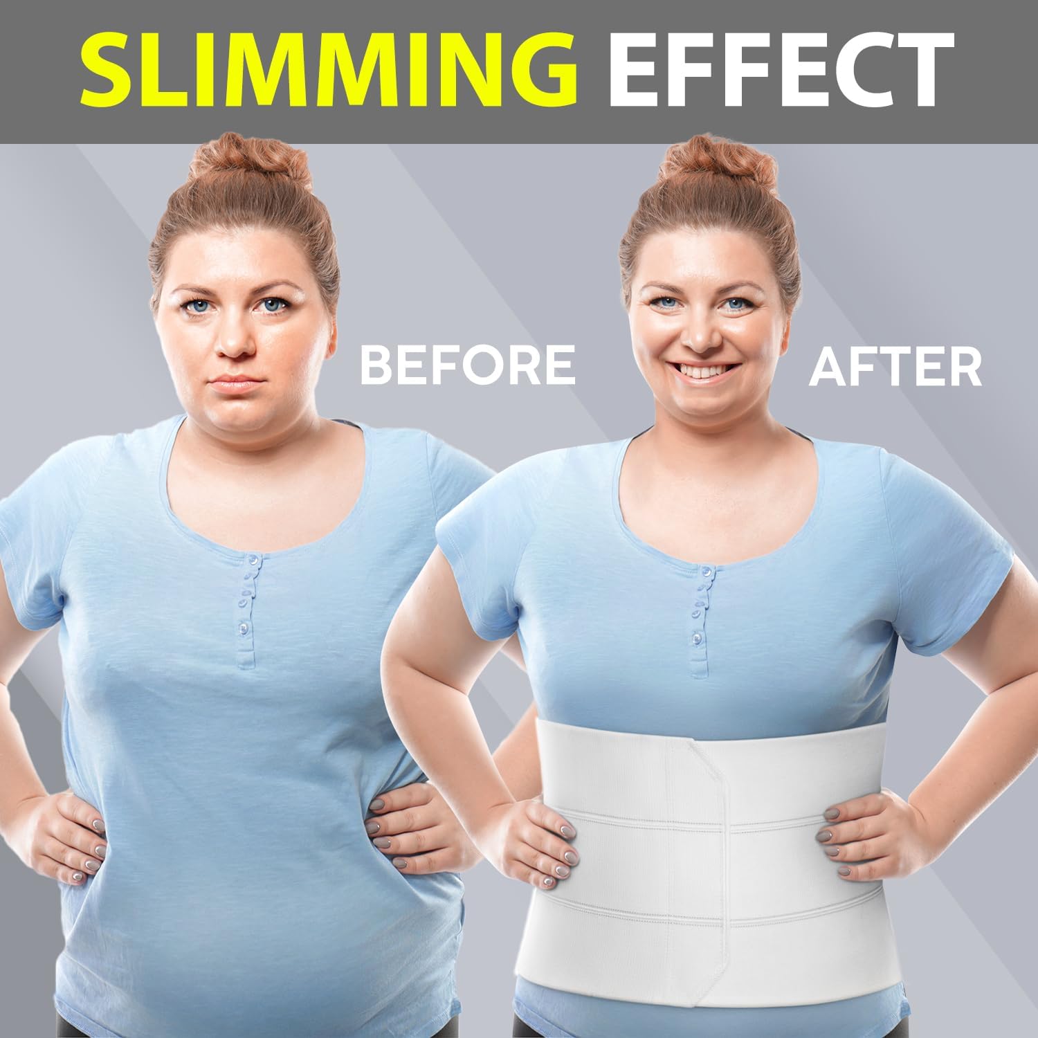 - Smoothes & Shapes Waistline - We have designed our abdominal wrap with hemstitched panels to conform to your body shape, making it comfortable to wear while sitting, standing, and lying down. This belly binder features contoured stitching that prevents it from rolling up or bunching up. Furthermore, this compression bandage helps to hold your stomach in place, shrink, flatten, and hide the appearance of loose, sagging skin after major weight loss. This belly wrap will boost your confidence.