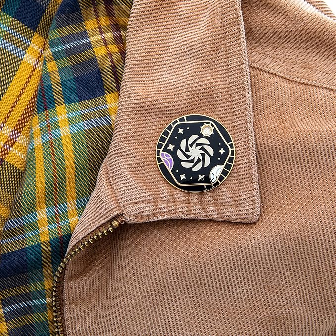 - An enamel pin that spins, and is made with hard enamel with gold metal finish