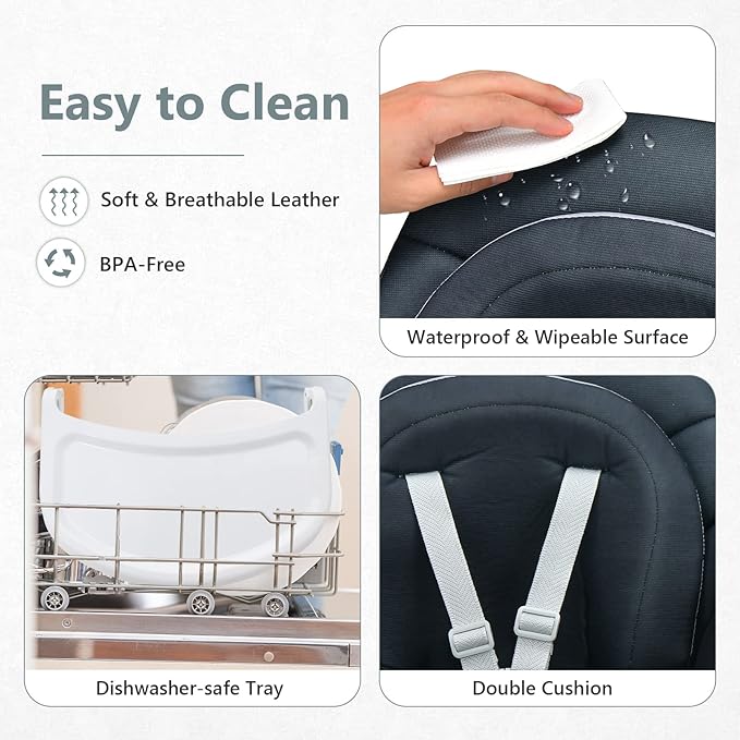 - Easy to Install & Clean: The assembly of this dining chair is very simple. Most parts are connected by buckle-connected. Various modes of transformation are convenient and fast. moreover, the PU cushions and trays are removable for cleaning.